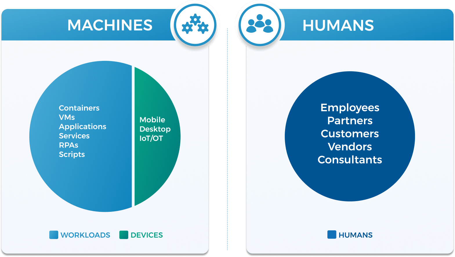 Nous ne parlons pas seulement de serveurs Web. Les “identités machines” (conteneurs, API, bots, IoT, clés SSH) sont 45 fois plus nombreuses que les identités humaines.