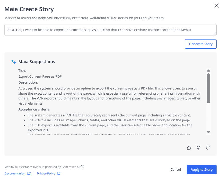 Mendix 11 propose désormais la transformation automatique des epics en user stories opérationnelles. Cette approche simplifie la transition entre la conception fonctionnelle et l’implémentation technique, tout en favorisant une meilleure cohérence entre les équipes. Cas concret :